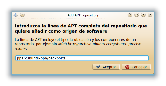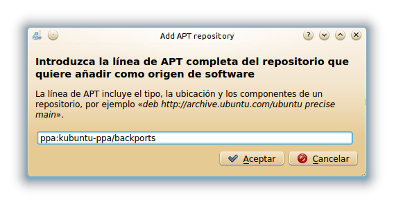 2. Para actualizar a KDE 4.9 tenemos que añadir el repositorio kubuntu-ppa/backports a nuestras fuentes de software que lo podemos hacer de dos formas:
