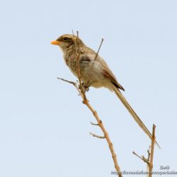 Especie: Alcaudón piquigualdo (Esp.), yellow-billed shrike (Eng.), Corvinella corvina.
