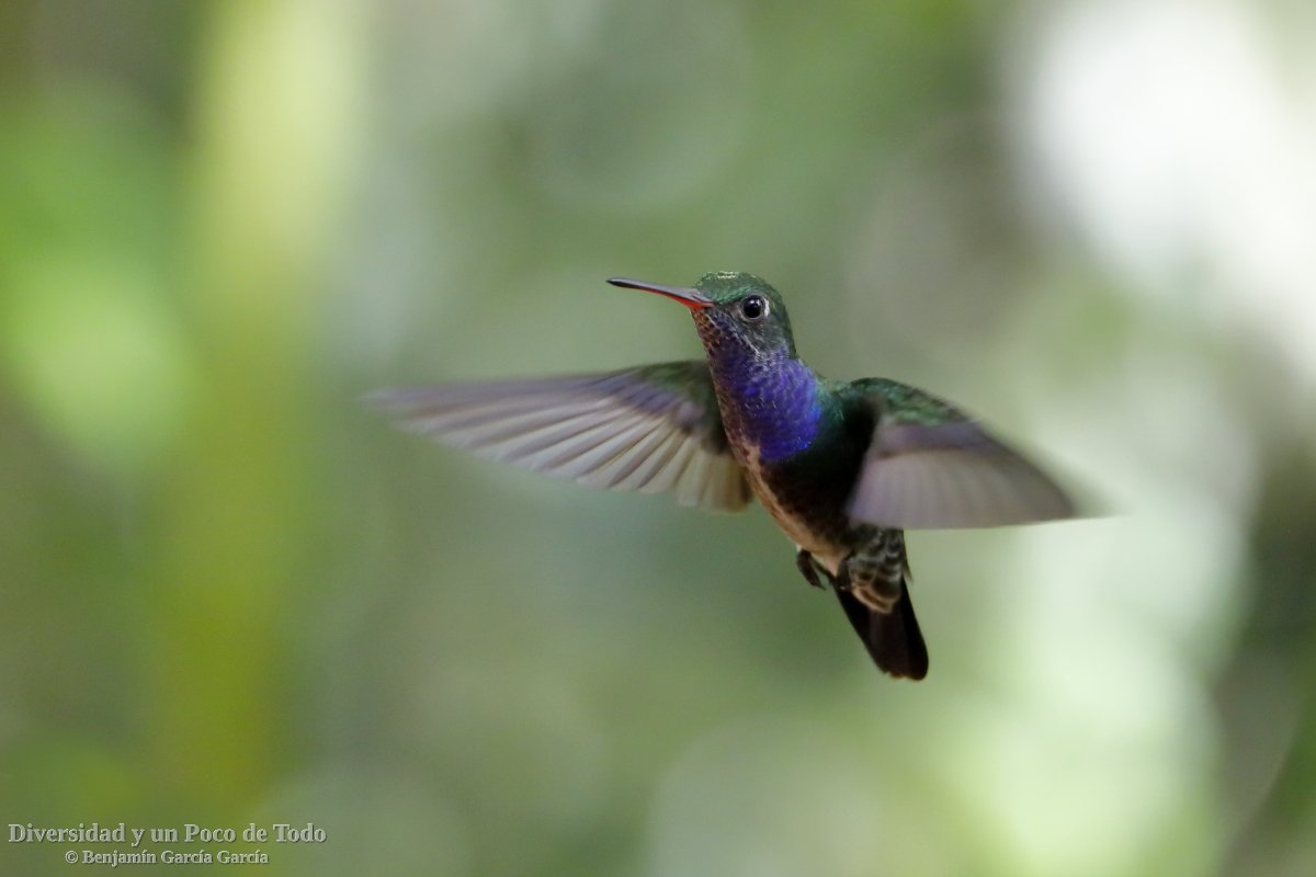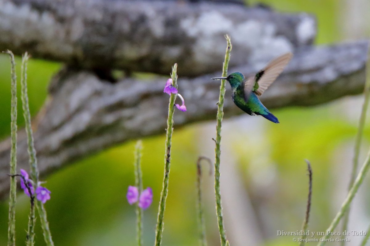 –Colibrí verdemar menor, Lesser Violetear (Colibri cyanotus). Es una especie andina pero que localmente es común en las regiones montañosas del sur de Centroamérica y de Sudamérica, desde Costa Rica hacia el sur hasta el norte de Argentina, y hacia el este hasta las montañas costeras del norte de Venezuela. Vive en bordes de bosque montano, claros y pastizales con árboles. En altitud se encuentra entre los 1400 a 3000 metros.