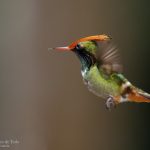 -Coqueta crestirrufa, Rufous-crested Coquette (Lophornis delattrei). Especie andina (desde Colombia a Bolivia) pero que curiosamente también se encuentra en Panamá. Vive en bordes de bosques húmedos, hábitats semiabiertos con arbustos y a lo largo de bordes de caminos, y desde los 600 a 2000 m.