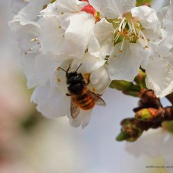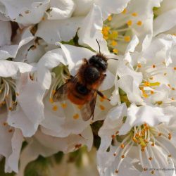 2 ideas sobre “Andrena fulva (abeja excavadora): Una abeja encarnada entre los blancos pétalos de la flor del cerezo.”