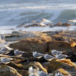 En algunos puntos de la costa, como es en la península de El Cabo (costa oeste de Bahía Falsa), se pueden observar también otras especies: alcaraván de El Cabo (Spotted Thick-knee; Burhinus capensis), avefría armada (Blacksmith Lapwing; Vanellus armatus), charrán piquigualdo, ibis Hadada (Hadada Ibis; Bostrychia hagedash), ibis sagrada (African Sacred Ibis; Threskiornis aethiopicus), distintas especies comunes de garzas, etc. Y en la zona urbana, y más concretamente en Simon’s Town en nuestro caso, paloma de Guinea (Speckled Pigeon; Columba guinea), tórtola ojirroja (Red-eyed Dove; Streptopelia semitorquata), tórtola de El Cabo (Ring-necked Dove; Streptopelia capicola) o estornino alirrojo (Red-winged Starling; Onychognathus morio).