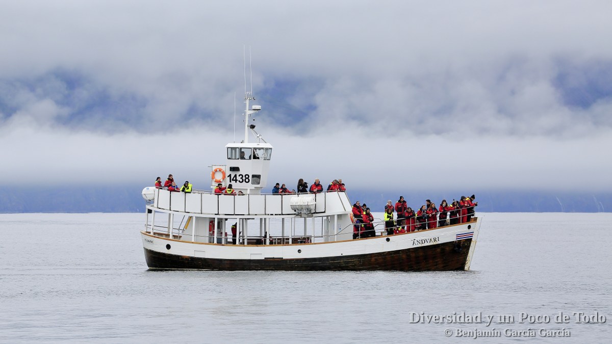 Pues allí estuve en julio de 2018, fue una experiencia muy especial y excitante. Durante la excursión marítima, sin embargo, no puede evitar pensar que Islandia también caza ballenas ¿Contradictorio? Yo diría que sí. Ahora bien, hay sectores a favor, que son cada vez más minoritarios; y sectores en contra de la caza, que están al alza. La evidencia económica, según la Universidad de Islandia, es tremenda: los cetáceos vivos valen mucho más para los islandeses, que muertos.