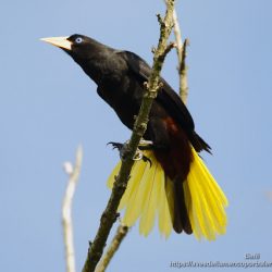Sí que es un ave bella. Pero como se comenta en el texto se encuentra en un área reducida. En Costa Rica también puedes ver el cacique de Moctezuma que tiene una distribución más amplia. Sobre esta especie también tenemos aquí un artículo, por si te interesa:
