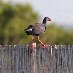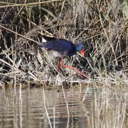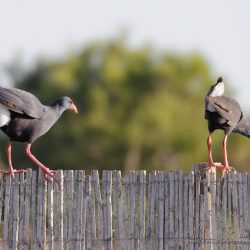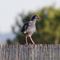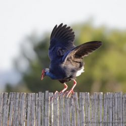 2 ideas sobre “Calamón común (Porphyrio porphyrio): Entre la vegetación palustre y sobre la valla de cañas de un observatorio en El Hondo (Alicante, España).”