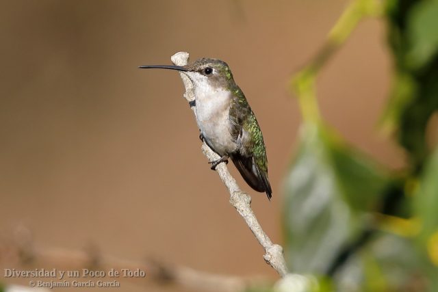 Especie: Colibrí de Abeillé (Esp.), Emerald-chinned Hummingbird (Eng.), Abeillia abeillei.