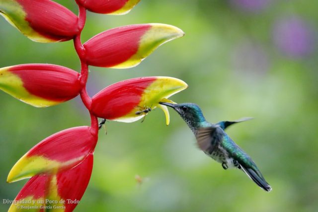 - Especie: Colibri nuquiblanco (Esp.), White-necked Jacobin (Eng.), Florisuga mellivora.
