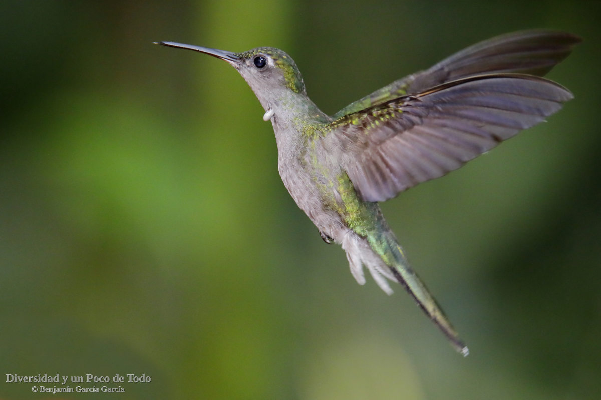 - Especie: Colibrí pechigrís (Esp.), Gray-breasted Sabrewing (Eng.), Campylopterus largipennis.