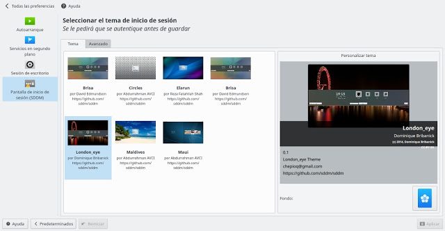 Nota: En el módulo de “Pantalla de inicio de sesión (SDDM)” existe la opción de cambiar el fondo pero a fecha de hoy no me funciona correctamente.