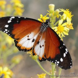 Especie: Danaus chrysippus alcippus, mariposa tigre (Esp.), plain tiger or African monarch (Eng.).