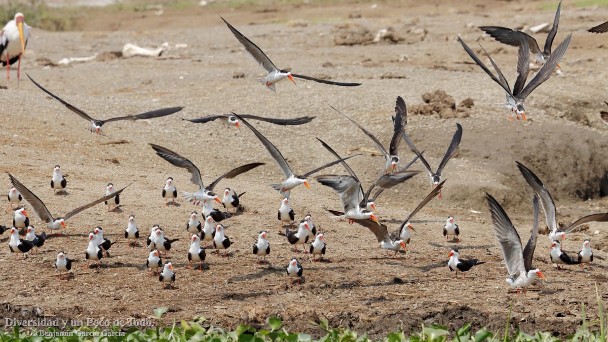 Los pelecaniformes están bien representados. Entre las garza es de destacar la garza Goliat, también conocida como garza gigante por su tamaño, aunque también garza real, garceta grande, garcilla común y cangrejera, o la universal garcilla bueyera. Y parientes próximos tales como ibis hadada y sagrado, y la espátula africana; y los espectaculares, tanto en vuelo como posados, pelícano común y rosado. De cormoranes dos especies: el grande, ese de los ojos color esmeralda, y el africano el de los de color rubí.