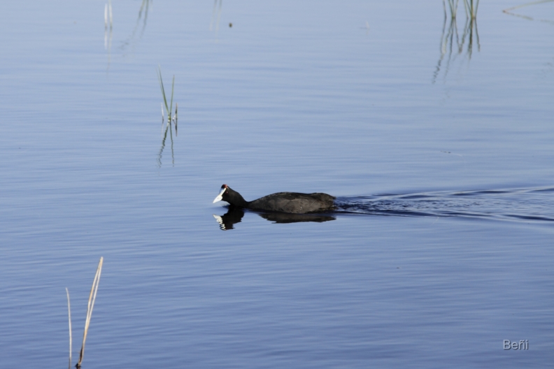 Las fotografías siguientes de focha cornuda (Fulica cristata) común (Fulica atra) las tomé una maña del 24 de mayo de 2011 en el Parque Nacional de las Tablas de Daimiel. Las de las primeras las hice en un observatorio situado entre Torre de Prado Ancho y la Laguna de Aclimatación y las de las segundas con los polluelos paseando entre esta última y la Isla del Pan.