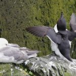Algunas aves terrestres también anidan en el acantilado, incluido el cuervo (Corvus corax), chochín común (Troglodytes troglodytes), lavandera blanca (Motacilla alba) y escribano nival (Plectrophenax nivalis).