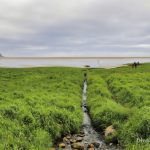 Ahora bien, para el turista de naturaleza el interés estriba en que es un lugar magnífico para la observación de aves. Y esto es así debido fundamentalmente a dos factores ambientales. El mar allí es muy poco profundo por lo que cuando baja la marea deja al descubierto extensas área emergidas salpicadas de charcos, lo cual pone a disposición alimento para limícolas y aves acuáticas. Por otro lado, junto a la costa tierra adentro existen marismas, estanques y praderas que proporcionan alimento y protección a distintas especies de aves. Así que pudimos observar, eider común, porrón moñudo, colimbo chico, logopodo alpino, chorlito dorado, zarapito trinador, aguja colinegra, agachadiza común, andarríos bastardo, archibebe común, chorlitejo grande, correlimos común, ostrero euroasiatico, lavandera blanca, bisbita pratense y zorzal alirrojo. Estas especies se pueden ver en «Fotografía de algunas aves de Islandia«.