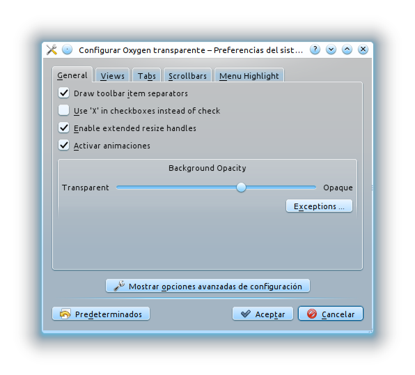 OxygenTransparent es un estilo no oficial de los elementos gráficos de KDE