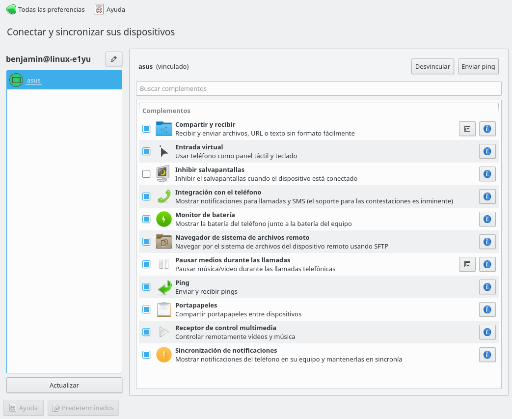 Desde uno u otro en la aplicación KDE Connect solicitamos vincular y en el otro surgirá una ventana emergente y picamos en “Aceptar” la vinculación solicitada. Y … a disfrutar de la conexión.