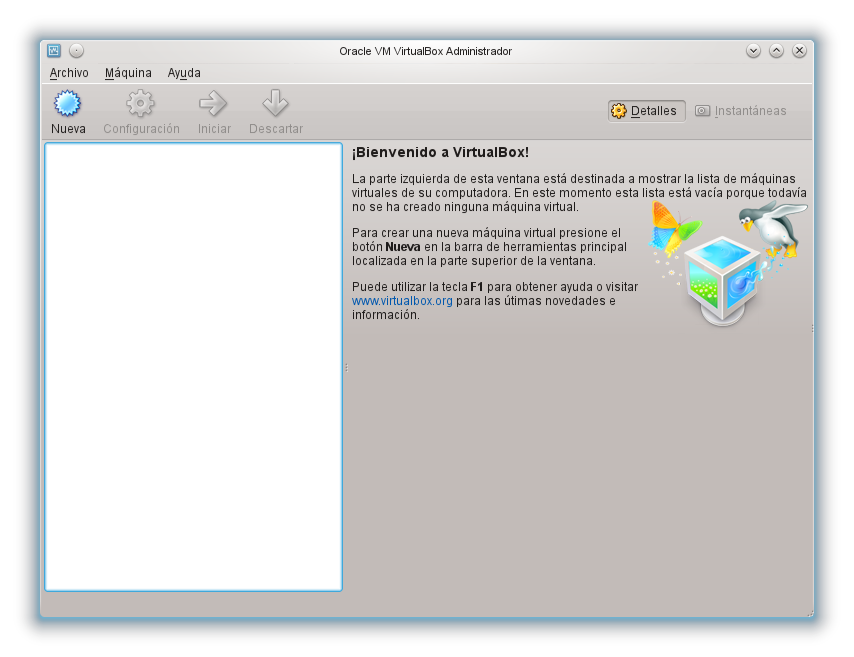 Sea como sea, ya tenemos VirtualBox listo para instalar una máquina virtual o un sistema huésped o un sistema invitado, como ustedes prefieran.
