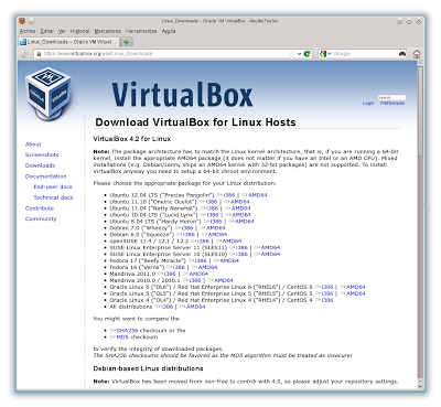página oficial de Virtualbox. A día de hoy picamos en VirtualBox 4.2 for Linux hosts que es la versión ultima. Después seleccionamos openSUSE la versión 12.2 y la arquitectura i386 o AMD64.