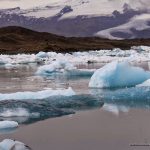 Jökulsárlón es un lago de origen glaciar que está junto a la costa en el sureste de Islandia. Se localiza entre las poblaciones Höfn y Vik, y lo encontramos antes de llagar al Parquee Nacional Skaftafell, si vamos hacia el sur. No tiene pérdida, está junto a la Ring Road (la carretera Nacional 1) en la cual hay un puente para salvar, precisamente, el corto canal de unos dos kilómetros de largo que desagua en el océano. Al lago llega una enorme lengua glaciar donde los bloques de hielo se desprenden formando icebergs de sorprendentes formas y colores: Blancos, azules, pardos y negros. Estos se distribuyen por sus 18 km2 de superficie; se van fundiendo lentamente y creo que sólo pequeños fragmentos alcanzan el océano. Si continuamos el viaje hacia el sur veremos espectaculares lenguas glaciares como Kvarjokull, al que se puede acceder fácilmente, o el Parque Nacional Skaftafell.