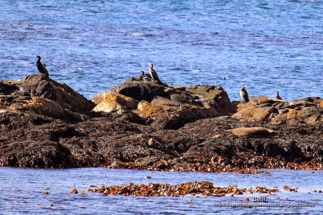 Al final de la senda se llega a un pequeño observatorio hecho de obra. Aquí los ejemplares estaban también en unos pequeños islotes chatos justos en frente de la costa, y a menor distancia que la anterior colonia, pero, aun así, también son necesarios prismáticos y teleobjetivo. Aquí también reposaban tranquilamente aunque pude presenciar algunos tímidos movimientos.