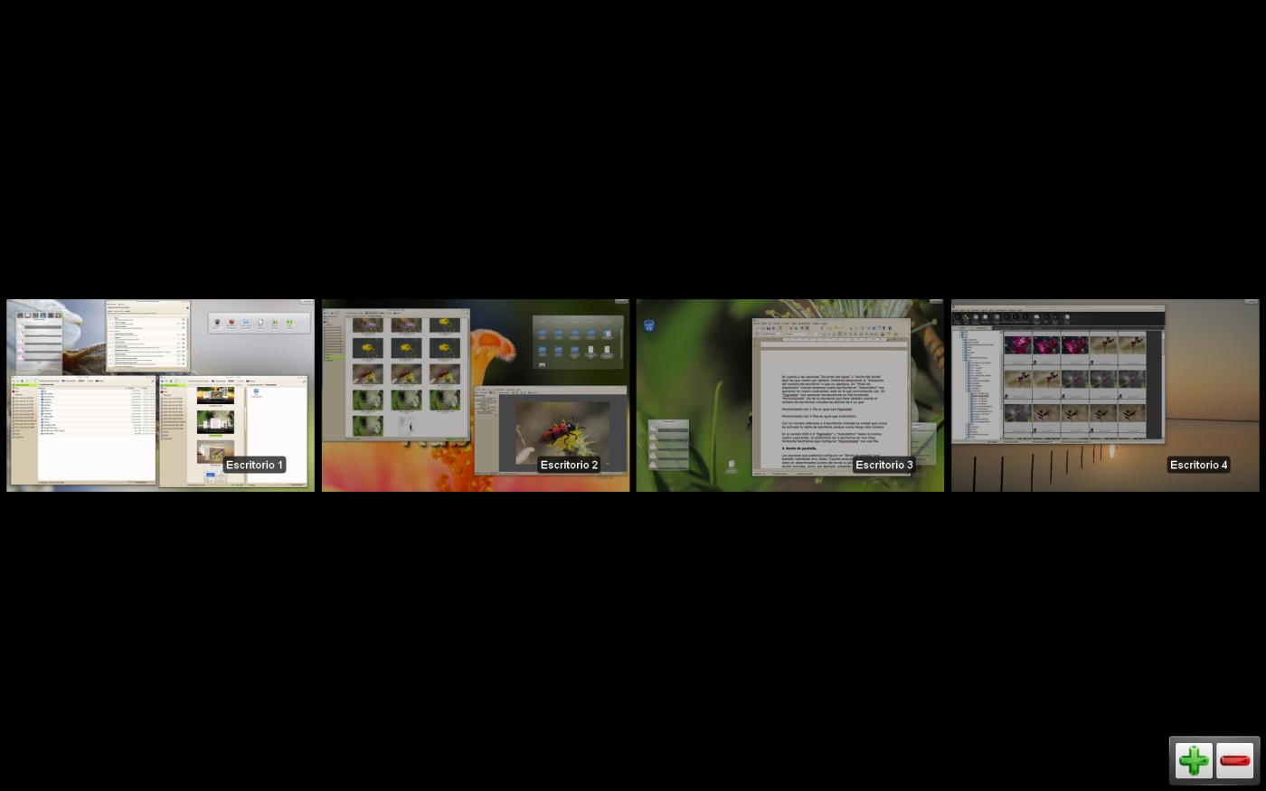 La rejilla de escritorio me resulta muy práctica cuando tengo varias aplicaciones funcionando en distintos escritorios, generalmente por categorías, y muchas ventanas abiertas, ya que nos expone los cuatro escritorios virtuales (si lo tienes así configurado) y las ventanas abiertas en cada uno de ellos, pudiendo desplazarnos con gran facilidad. Para activarlo y configurarlo tenemos que ir a: