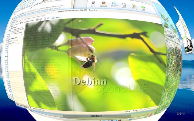 En mi equipo además cuando utilizo los controladores ATI libres funcionan perfectamente el cubo de escritorio, escritorio cilíndrico y esférico, pero cuando instalo los privativos sólo funciona el primero. En realidad esto es lo de menos, como decía realmente no son muy operativos y sólo los activo para impresionar a alguien que aun cree que Linux es poco amigable y/o sólo funciona con línea de comandos; obviamente, no es la mejor demostración de su potencia y capacidades pero ante la ignorancia -sin acritud- es una opción muy gráfica y en ocasiones efectiva.