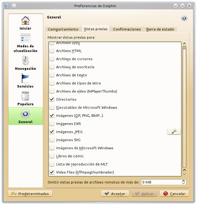 (o Preferencia)>Configurar Dolphin>General>Vistas Previas