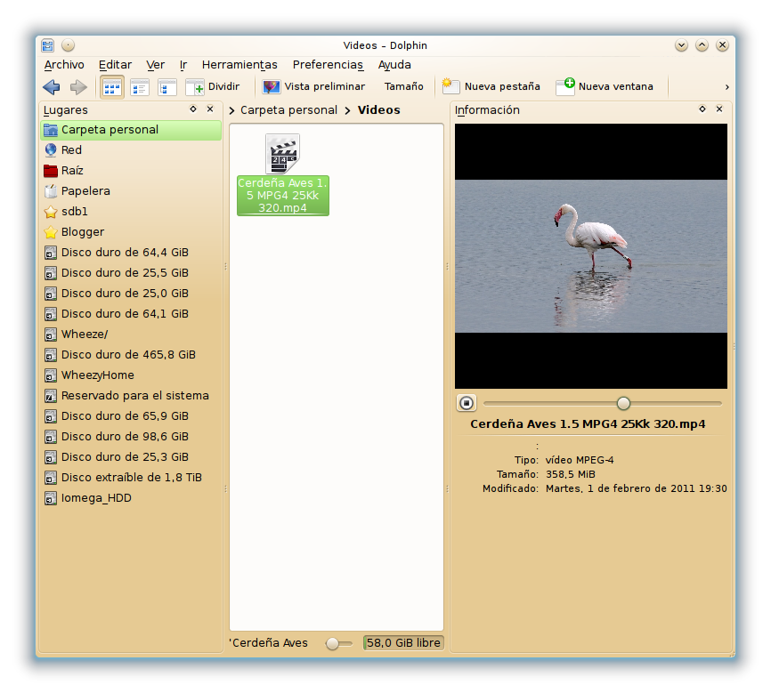 el explorador de carpetas y archivos Dolphin podemos previsualizar vídeos, pero esta opción por lo general en las distintas