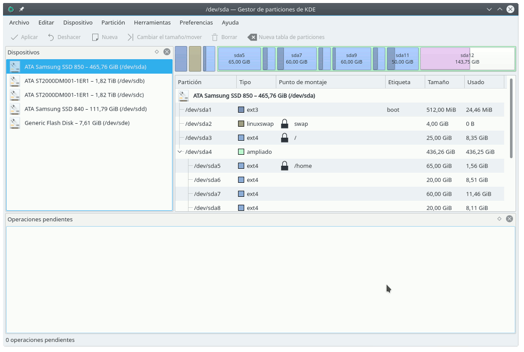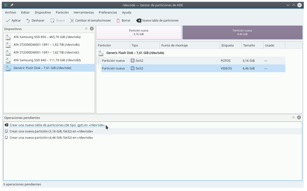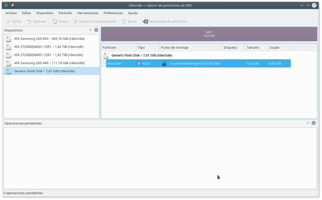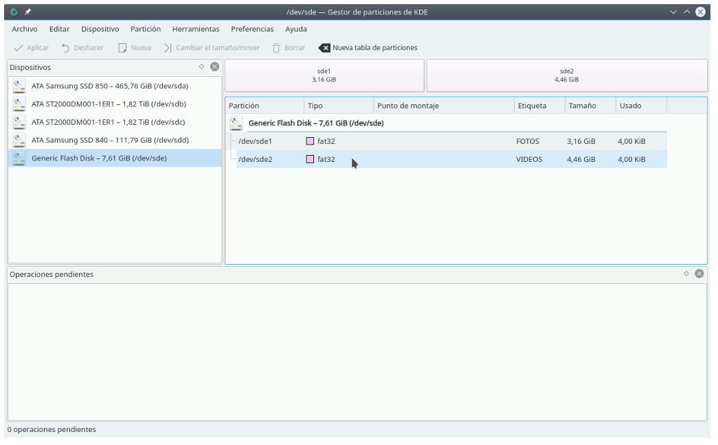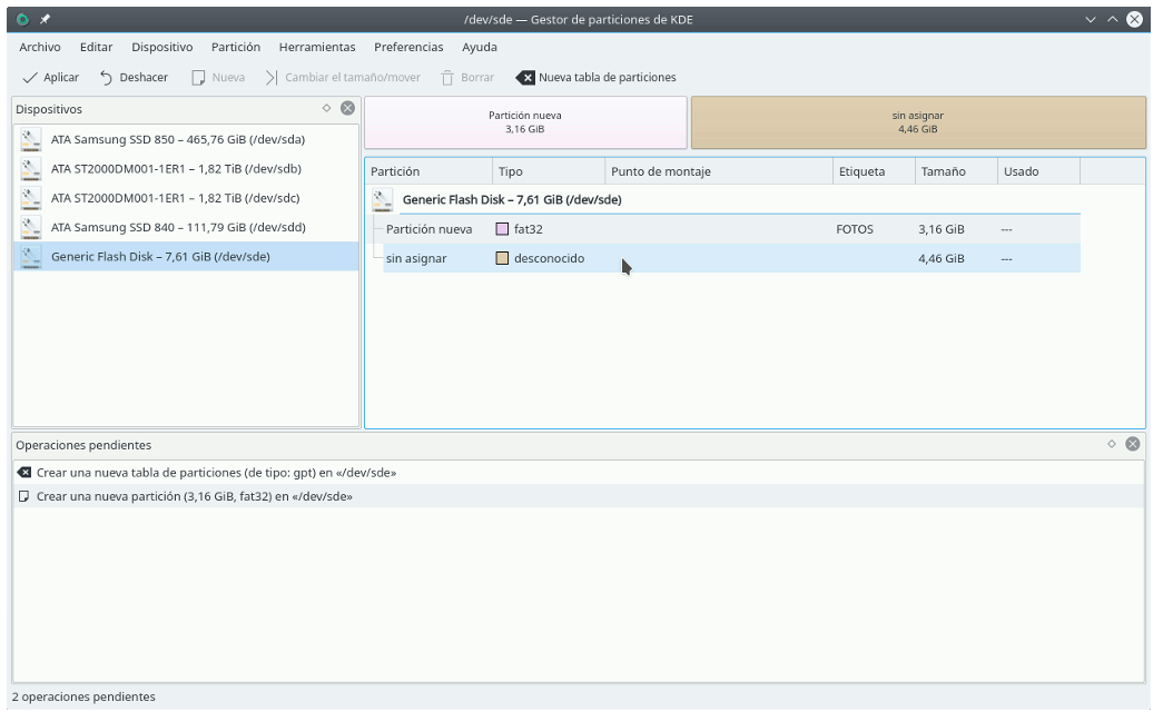 pues yo siento decirte que no me aclaro con el gestor de particiones de kde.Quería formatear un pendrive y me ha quedado inservible.te dejo una captura de pantalla para que veas