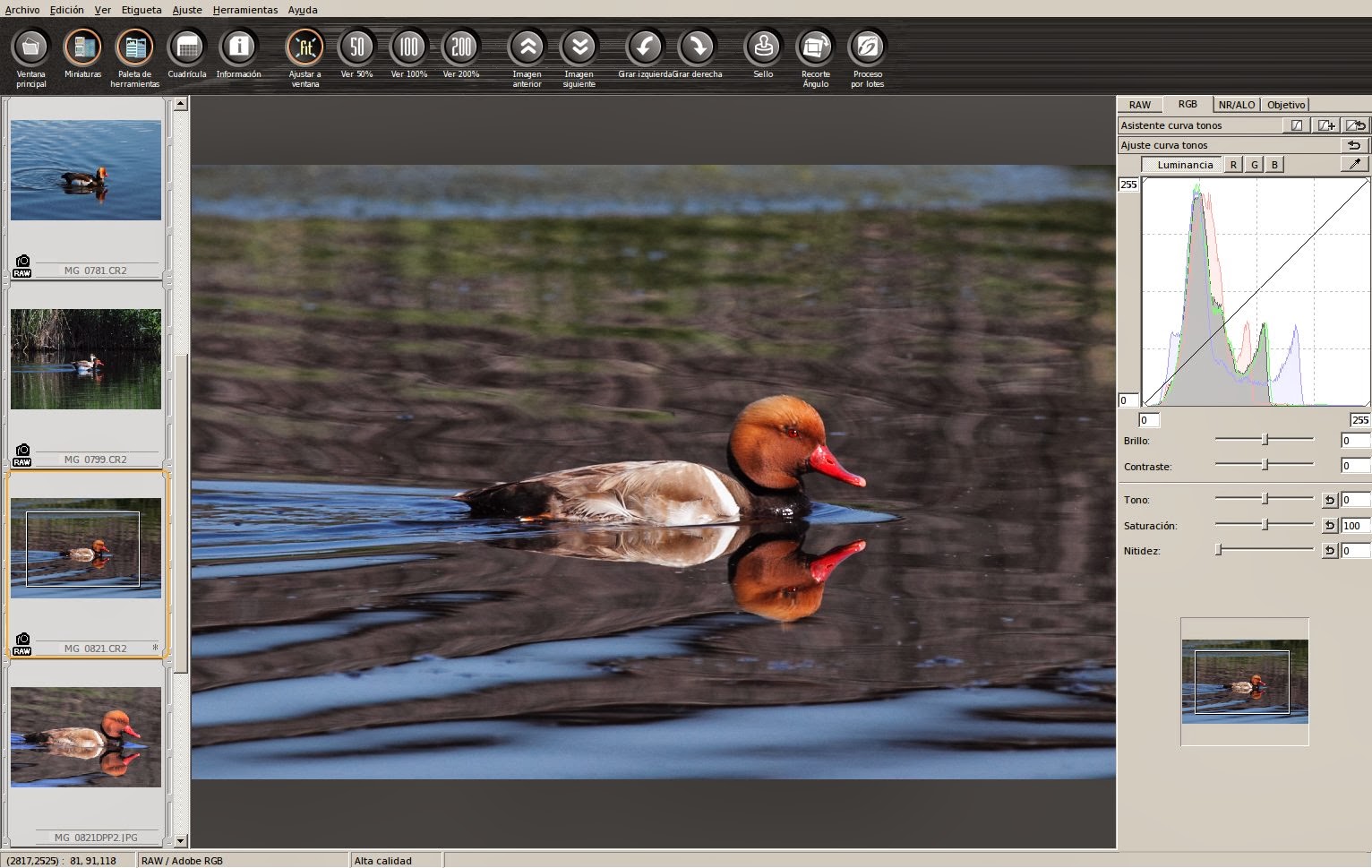 | Digital Photo Professional (Canon) trabajando en Wine. |