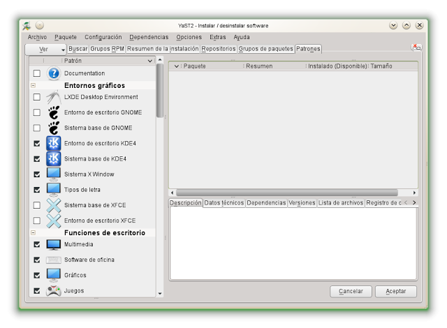 Vamos al gestor de software de YaST: