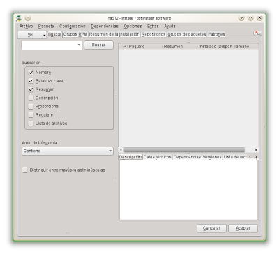 Desde un principio voy a "Yast–> Instalar/desinstalar software" y solo aparece una pantalla que dice "Gestor de software"