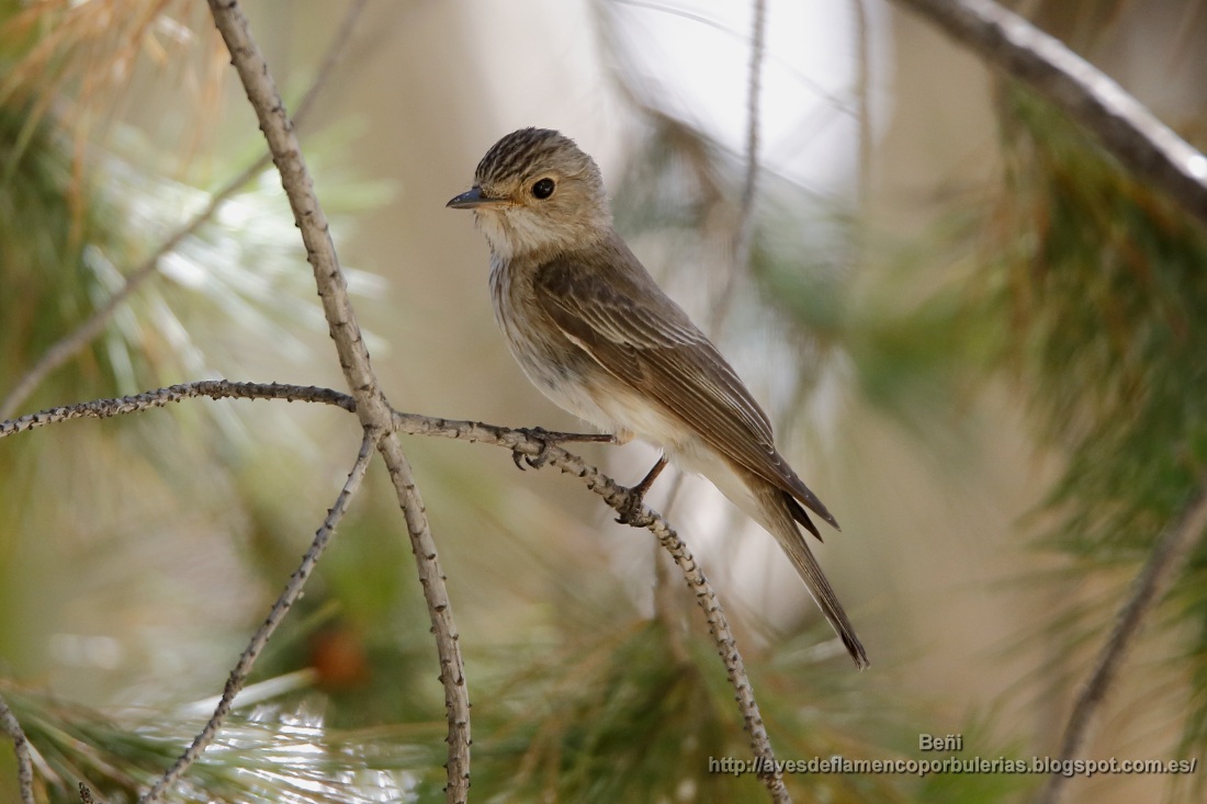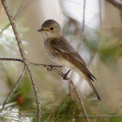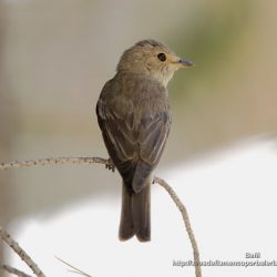 Especie: Papamoscas gris (Esp.), spotted flycatcher (Eng.), Muscicapa striata.
