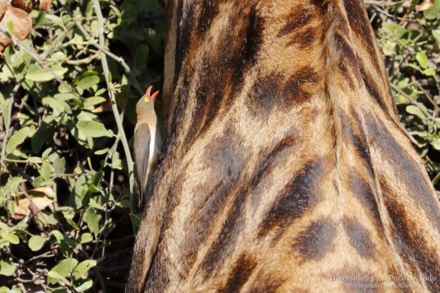 - Especie: Picabueyes piquirrojo (Esp.), Red-billed Oxpecker (Eng.), Buphagus erythrorynchus.