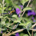 Se alimenta del néctar de flores, principalmente de los árboles del género Inga aunque, también, de arbustos como la verbena púrpura. No obstante, generalmente busca alimento en el dosel del bosque. Como otras especies de colibríes, la dieta la completa capturando pequeños insectos.