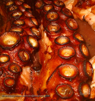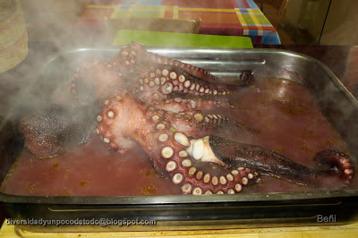 Casi me ahogo. En cuanto he visto esos pulpos, (1 d ellos, hasta parece mirarte….) he empezado a salivar y a salivar, y venga salivar y casi me ahogo. Menos mal que me he puesto a tararear esas bulerías, y llorando un poco me he desahogado.