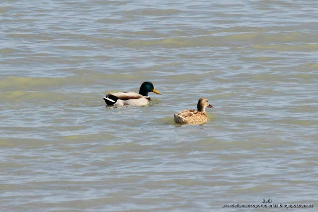 | Ánade real o azulón. Ejemplar macho y ejemplar hembra. |