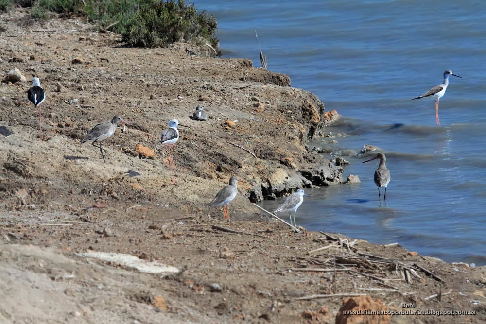 | Limícolas: cigüeñuela, aguja colinegra, archibebe común y archibebe claro. |
