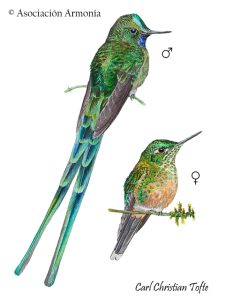 - Especie: Silfo de King (Esp.), Long-tailed Sylph (Eng.), Aglaiocercus kingii.