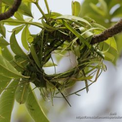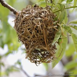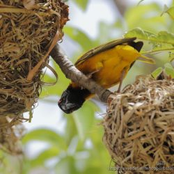 La época de reproducción del tejedor común varía según las zonas dentro de su área distribución en el África subsahariana. En Gambia se reproduce entre mayo y noviembre, así que allí estuvimos cuando se encuentra en plena faena reproductiva.
