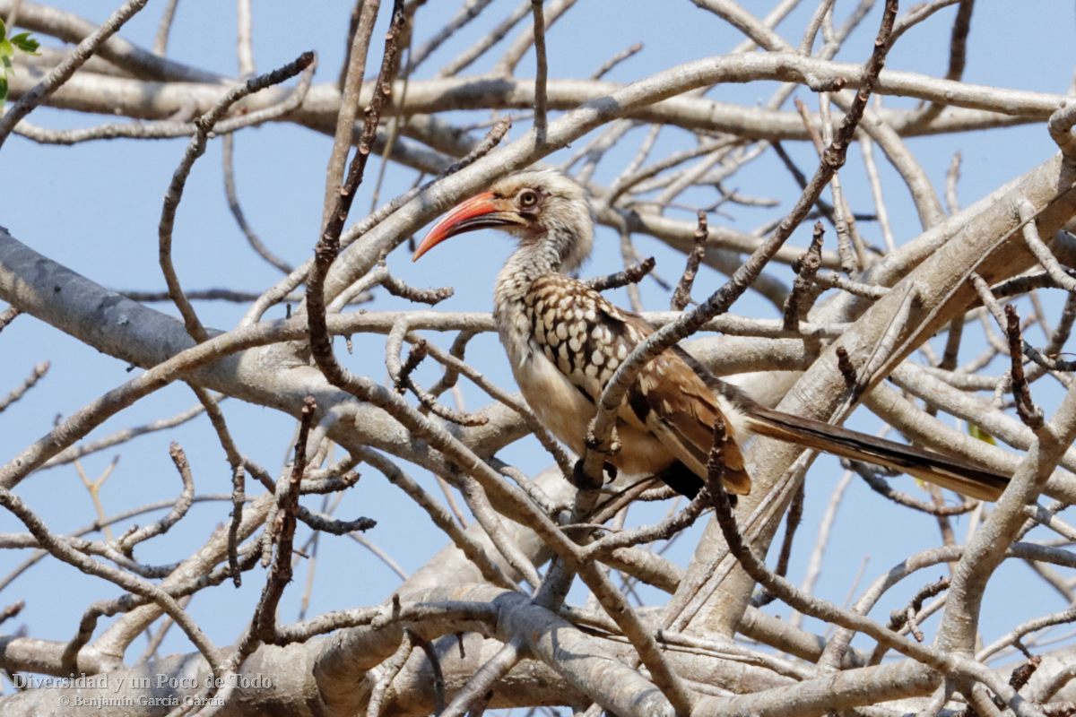 - Especie: Toco piquirrojo sureño (Esp), Southern Red-billed Hornbill (Eng.), Tockus rufirostris.