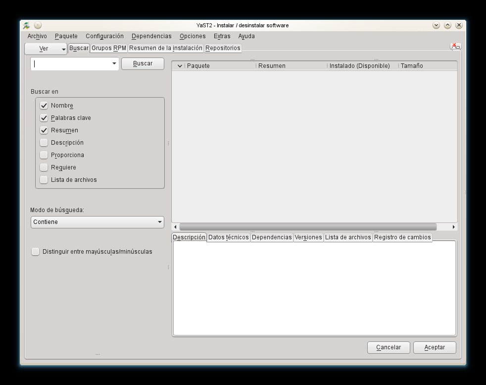 Una pauta que siempre me ha resultado rara en el gestor de software (Instalar/desinstar software) de YaST, es que cuando instalas paquetes, o los desinstalas, se cierra automáticamente una vez que ha terminado de procesar. Algunas veces puede dar igual, pero otras cuando instalo varias aplicaciones me gusta hacerlo una detrás de otra: marco paquetes, compruebo las dependencias y en su caso el paquete de idiomas, e instalo, después abro la aplicación y compruebo mínimamente el funcionamiento; repito con otra aplicación y etc.; otras veces, simplemente, se me ha olvidado que hay algo más que instalar. Y el gestor se cierra cada vez y hay que abrirlo de nuevo, lo que me ha parecido siempre raro ya que con Synaptic (Debian o Kubuntu) se cierra cuando yo lo decido, que es cuando he terminado y pico en “cerrar”. Bueno este comportamiento “raro”, y para mi algunas veces “molesto”, lo desactivo desde que encontré la solución