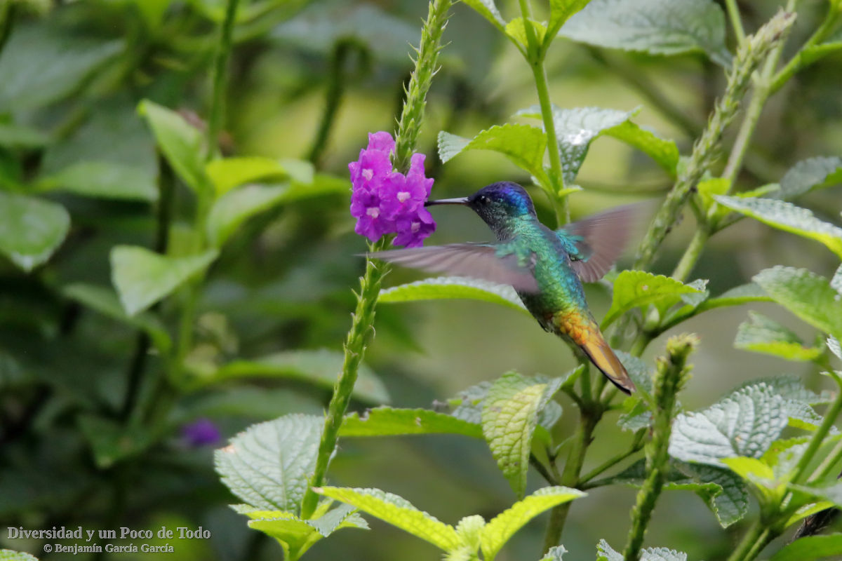 - Especie: Zafiro colidorado (Esp.), Golden-tailed Sapphire (Eng.), Chrysuronia oenone.