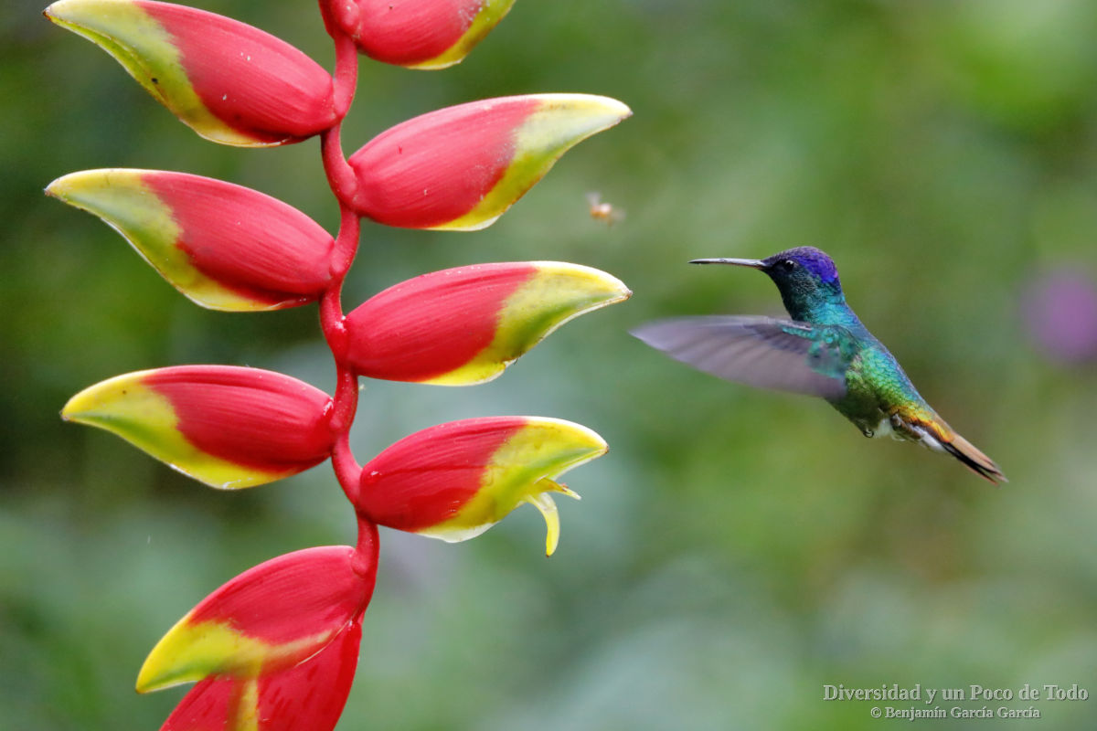 Nectívoro e insectívoro, como corresponde a un colibrí